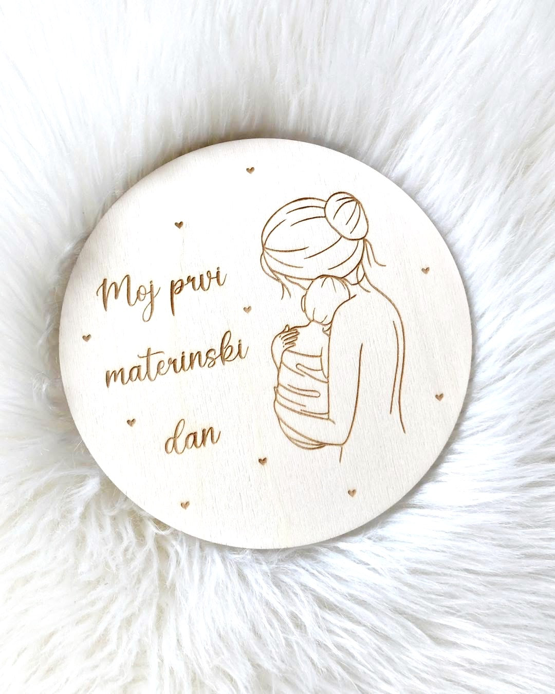 Lesena kartica z napisom Moj prvi materinski dan nosi poseben pomen in primerna je tako za otroka kot za mamico, saj vsak enkrat prvič doživi ta čarobni dan. Čudovit spomin na začetek nove vloge, polne ljubezni, topline in nežnih trenutkov.