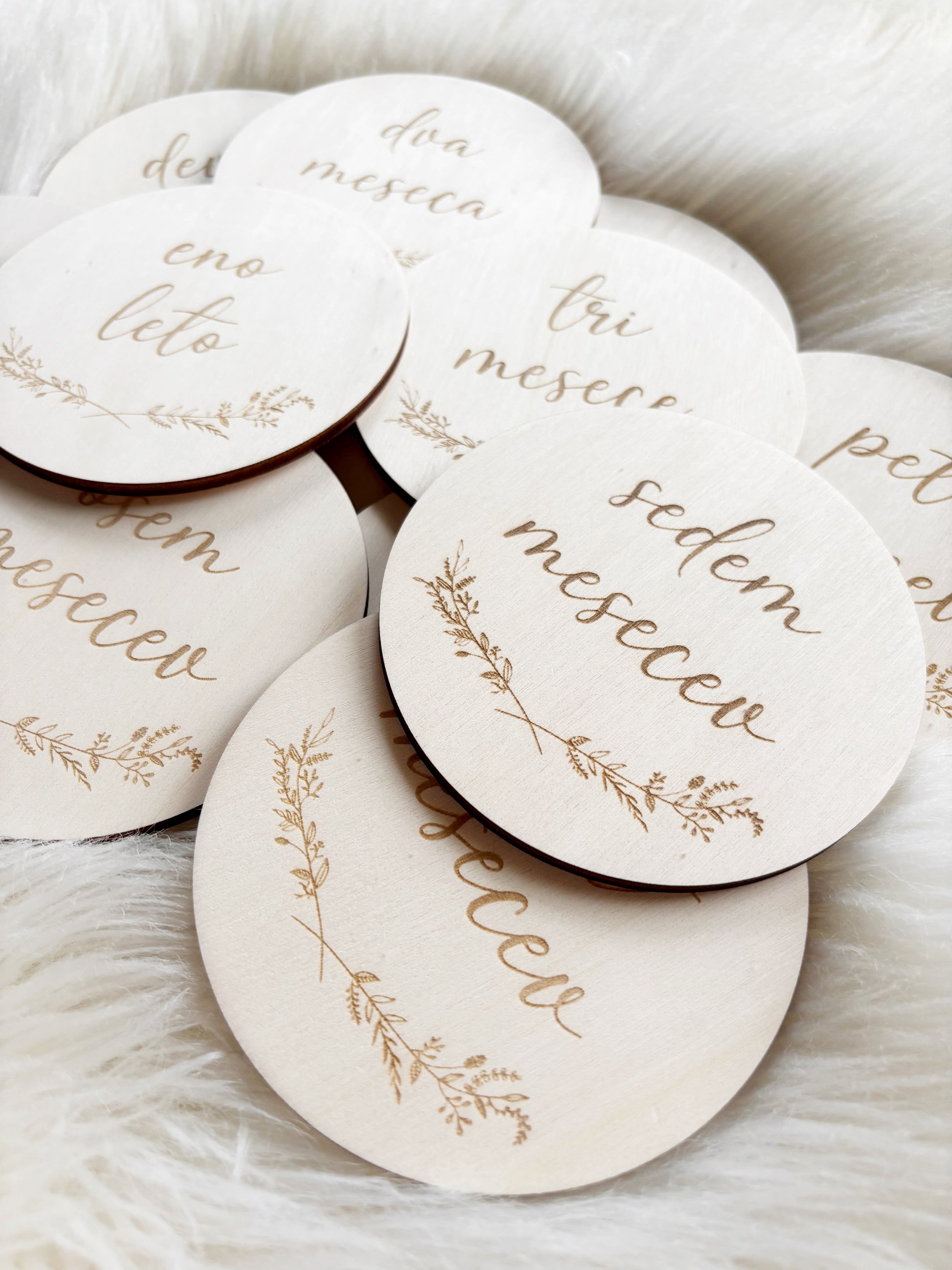 Z lesenimi karticami boste spomine prvega leta ujeli na prav poseben način. Nežne vejice in minimalističen dizajn obogatijo vsako fotografijo. Kartice so super izbira za novopečene starše, so pa tudi lepo darilo za baby shower ali kot darilo ob obisku novorojenčka.