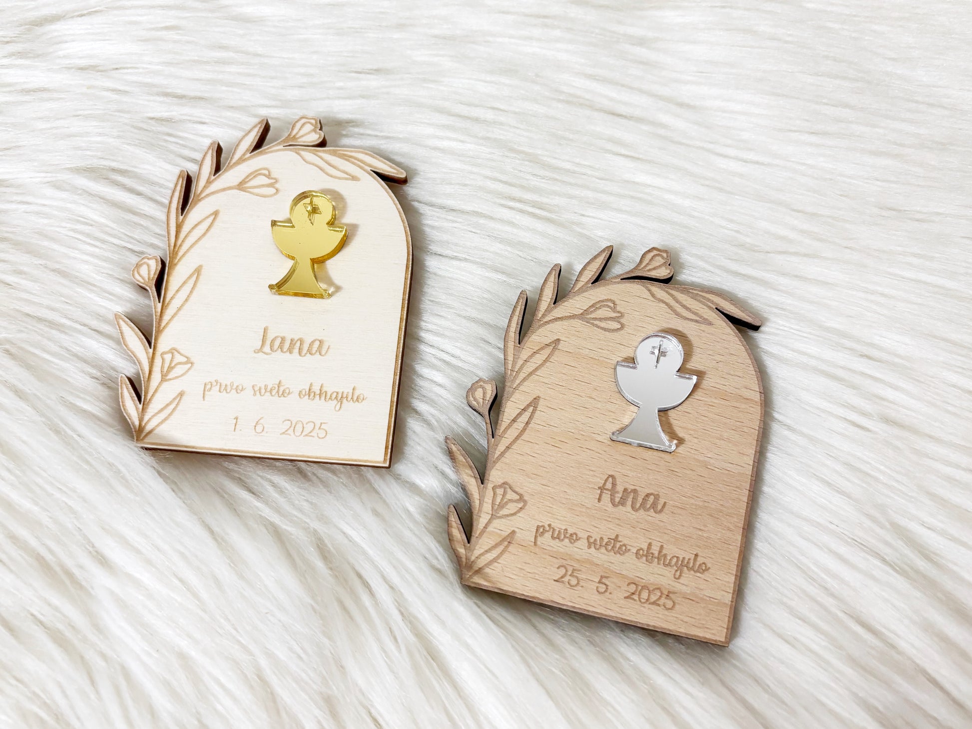 Leseni spominki z magnetkom za prvo sveto obhajilo, ki bodo vašim gostom ostali kot zahvala na ta poseben dan.