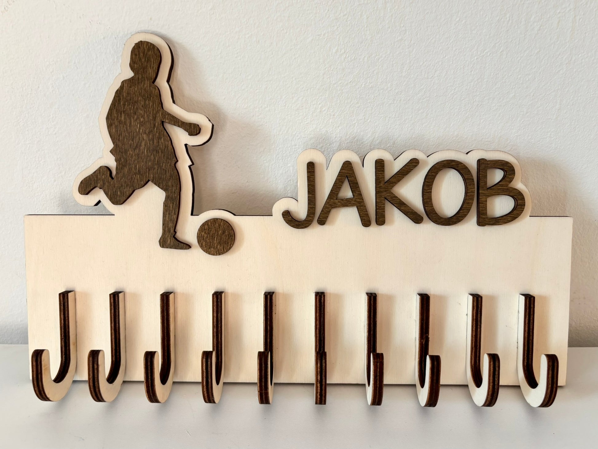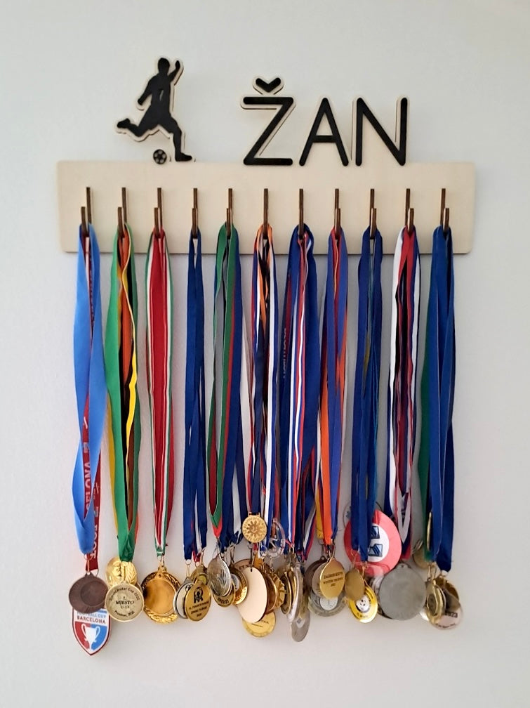 Praktičen in estetski organizer za medalje, da bodo dosežki vaših otrok vedno na vidnem mestu. Vsebuje 10 lesenih nosilcev.
