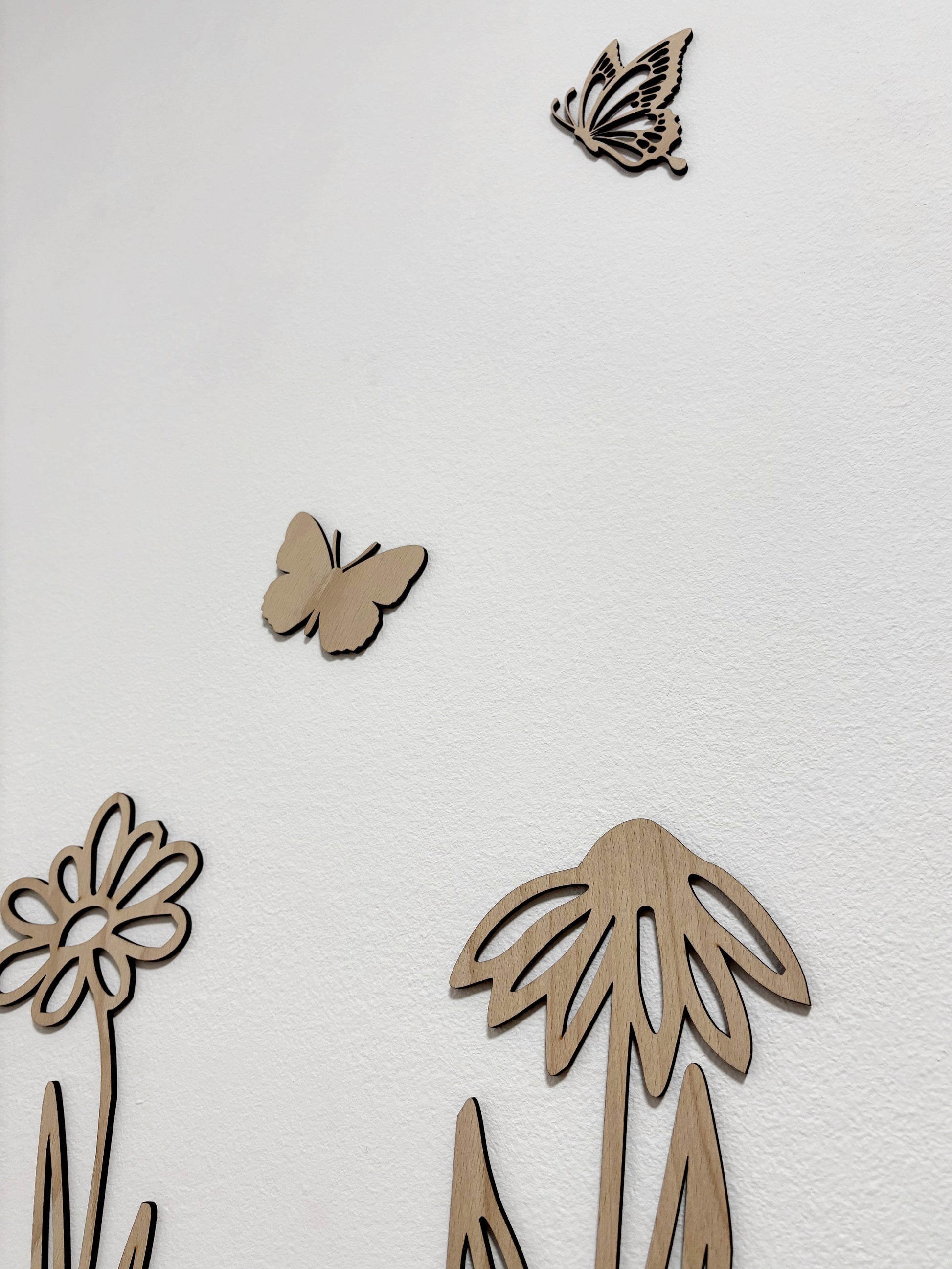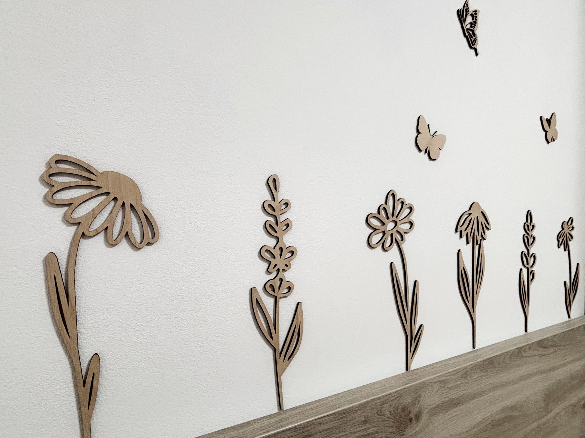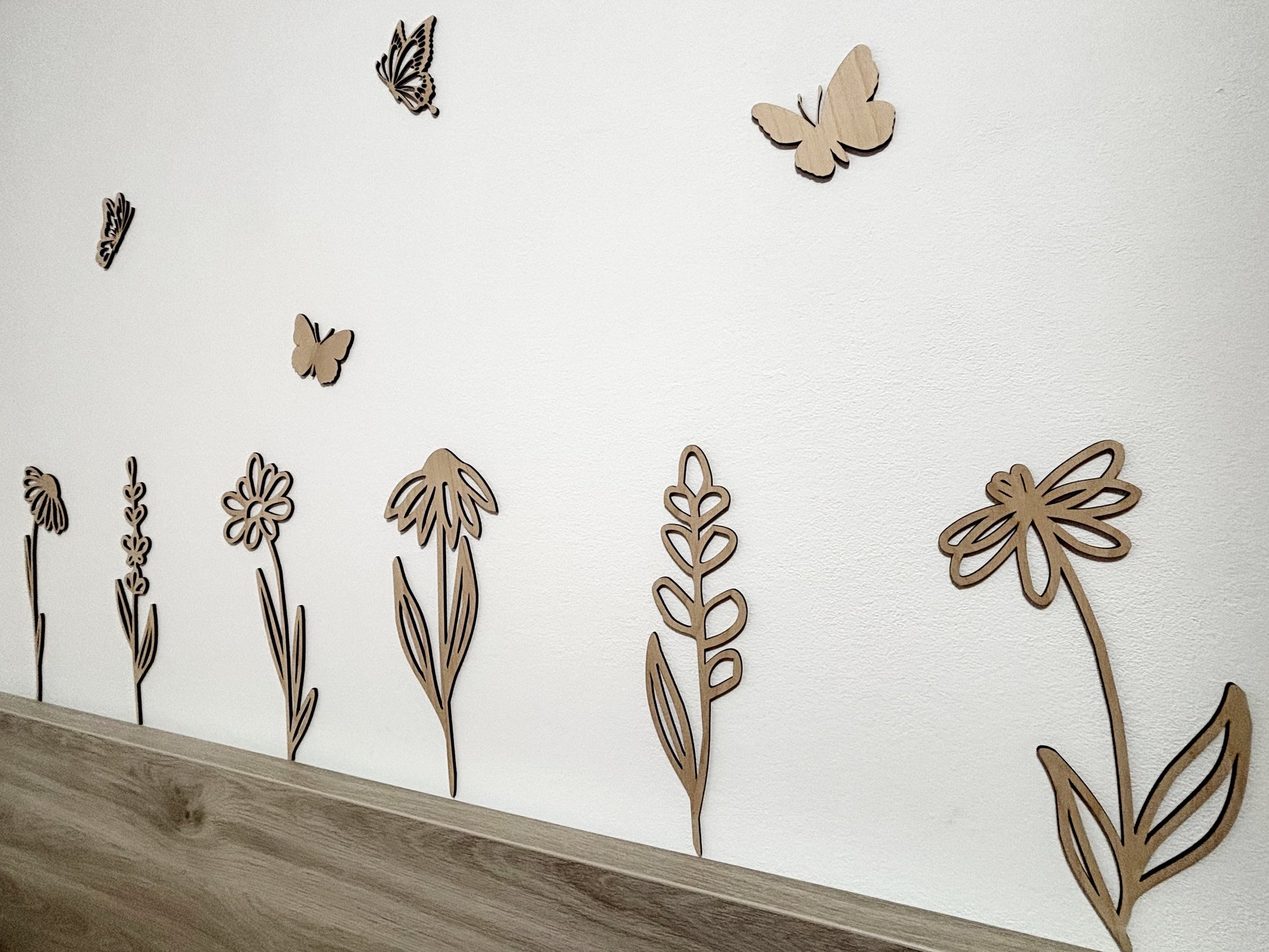 V otroško sobico ali v kateri drug prostor vnesite kanček pravljice z nežno leseno stensko dekoracijo, ki jo sestavljajo rožice ter metuljčki. Dekoracija zelo poživi prostor in mu doda toplino narave ter prijetno domačnost. Leseni motivi se čudovito podajo k različnim stilom opreme, od sodobnega do rustikalnega.
