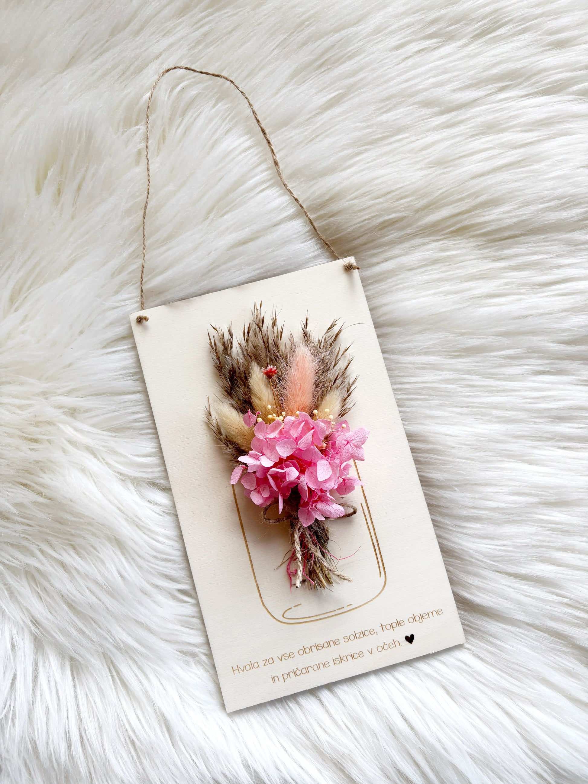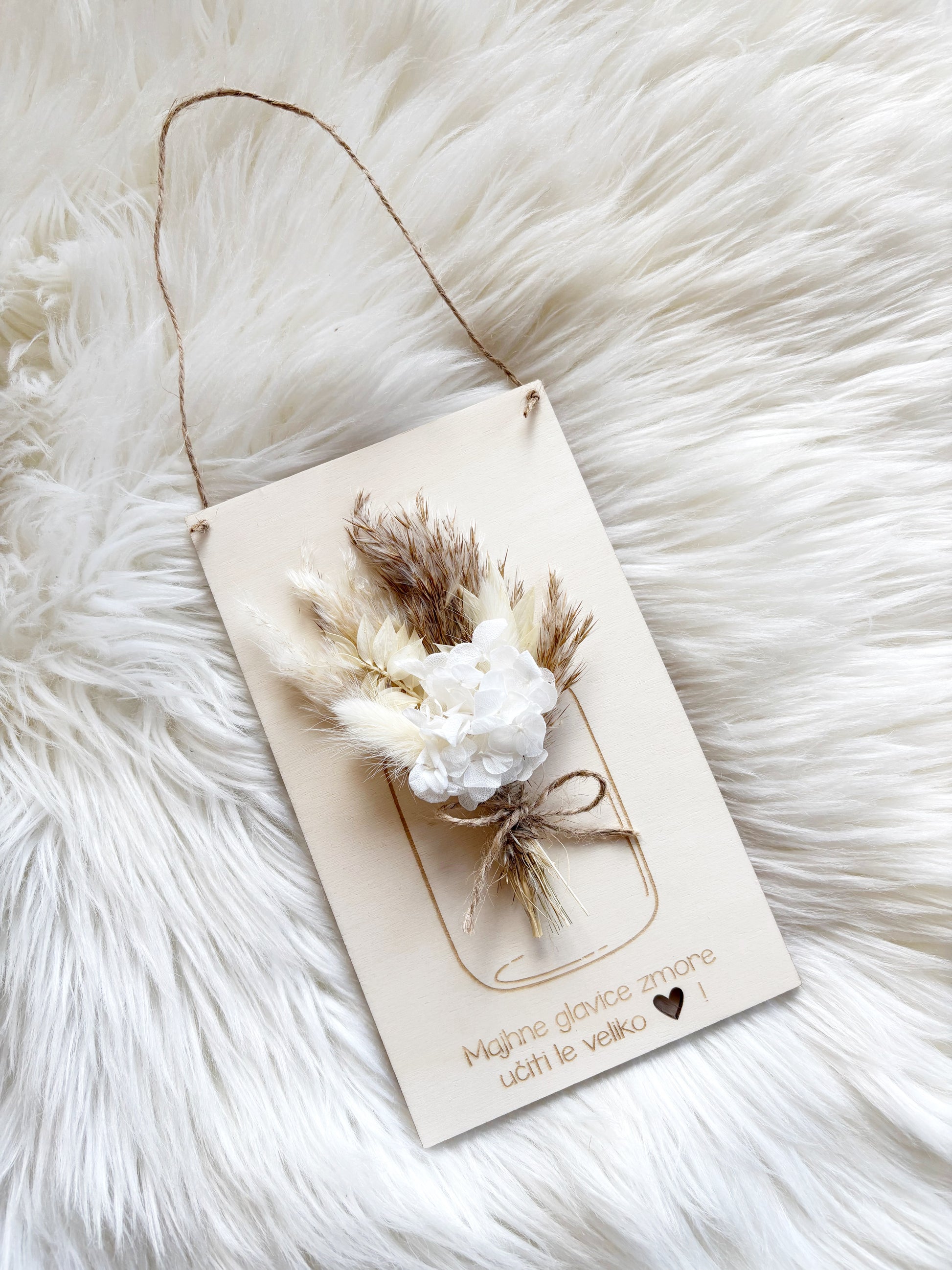 Unikatna lesena tablica s suhim šopkom in posvetilom je popolna srčna zahvala za vzgojiteljice ali učiteljice.