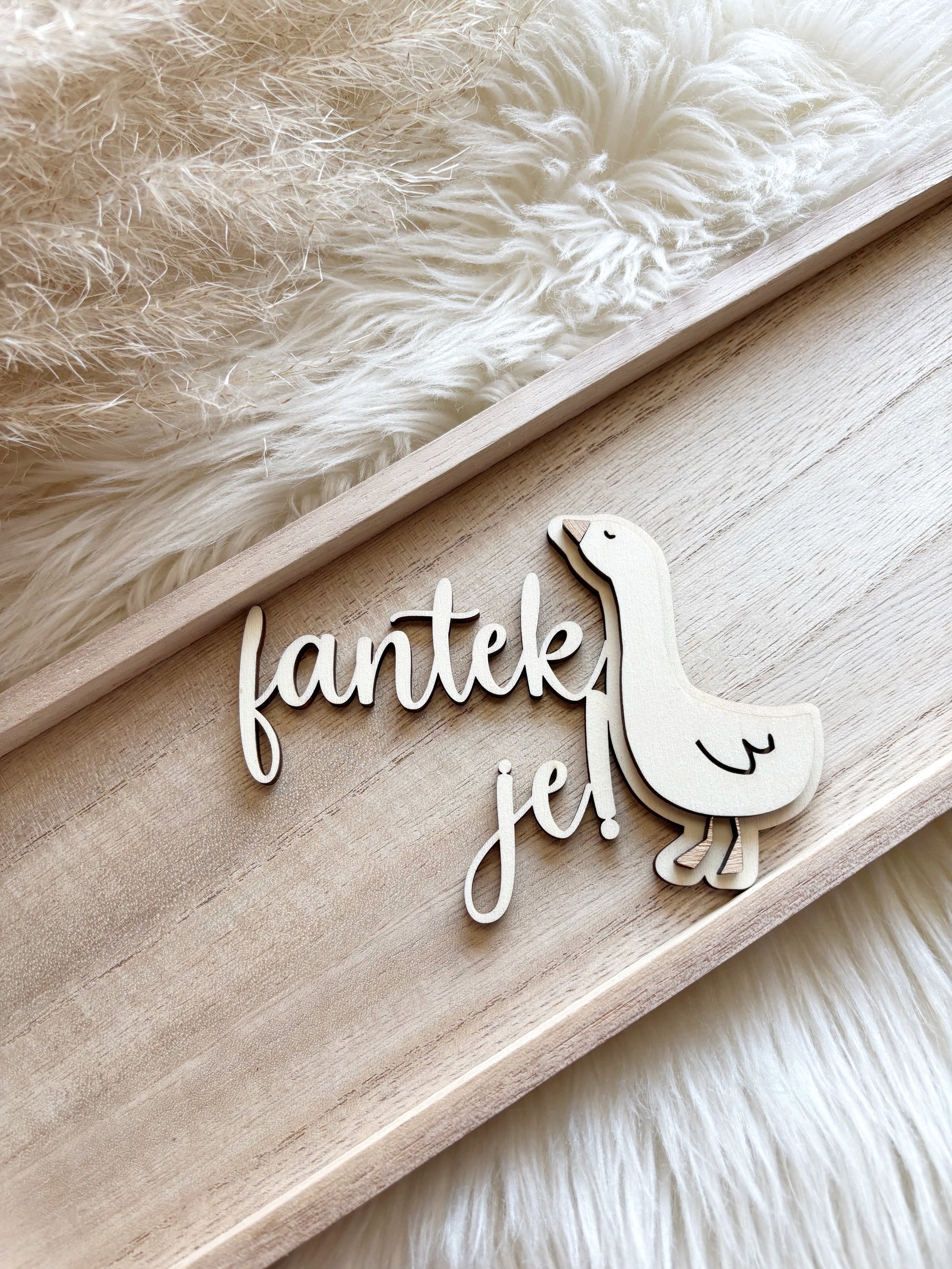 Prikupen lesen topper z nežno goskico je popoln dodatek za razkritje spola dojenčka. Naraven les, mehke linije in ljubek motiv ustvarijo čarobno vzdušje, polno pričakovanja in veselja. Idealen za torto na baby showerju ali posebnem družinskem trenutku, ko vprašanje »Je fantek ali punčka?« dobi svoj najlepši odgovor.