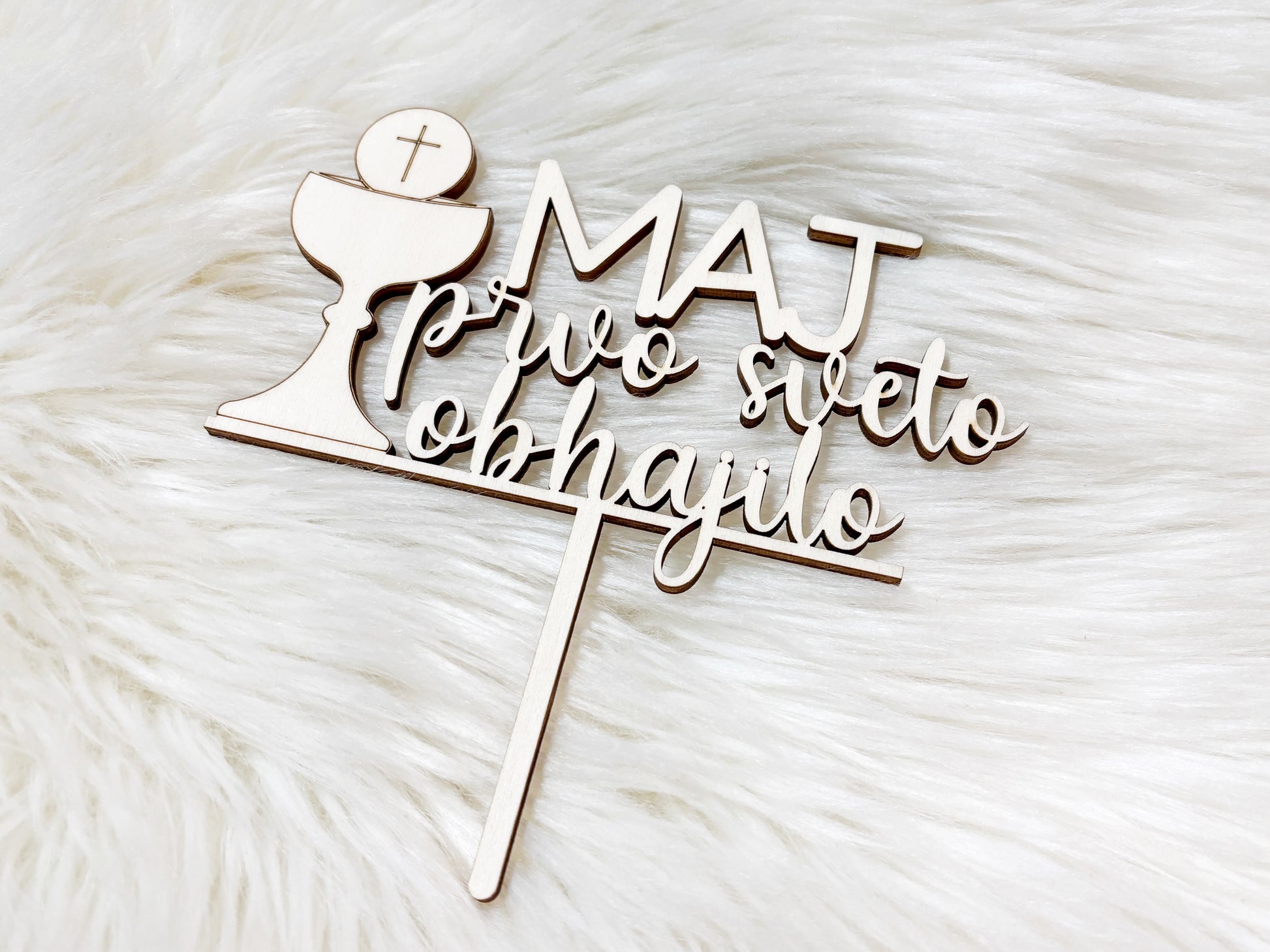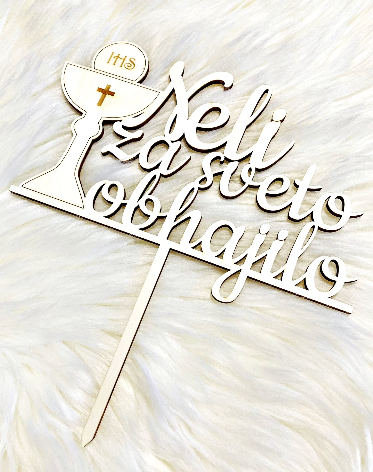 Nežen in eleganten cake topper za sveto obhajilo s kelihom, ki torti doda simboliko in toplino tega posebnega dne.